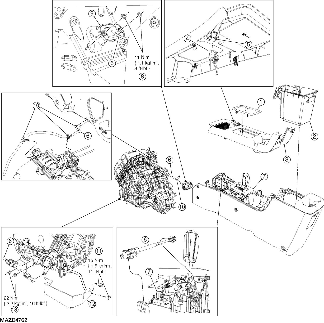 - Tighten to 22 Nm {2.2 kgf-m, 16 ft-lbf}.