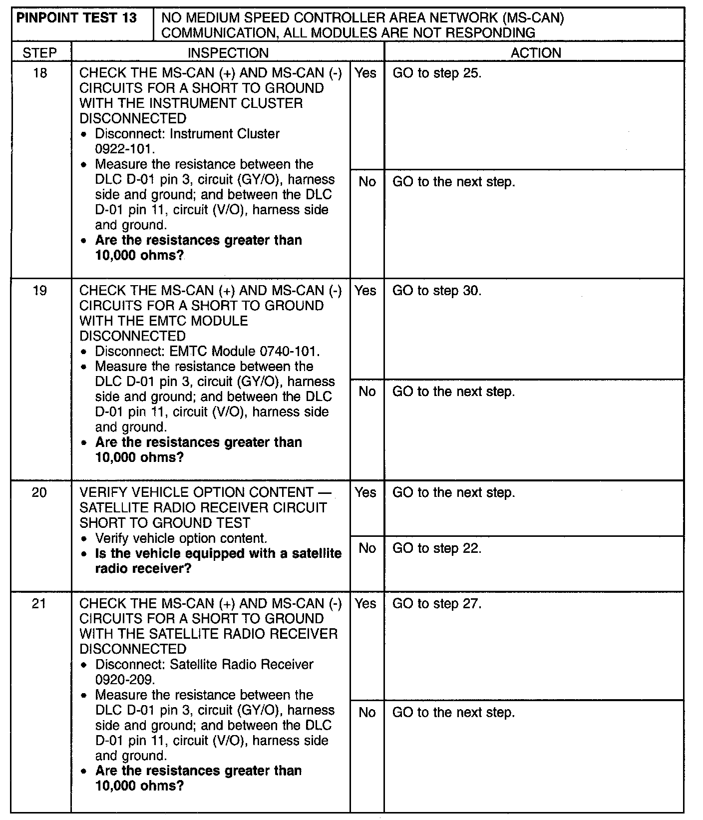 Pinpoint Test 13: No Medium Speed Controller Area Network (MS-CAN) Communication, All Modules Are Not Responding