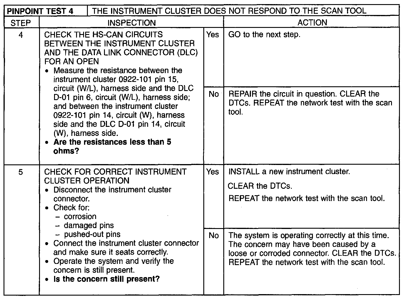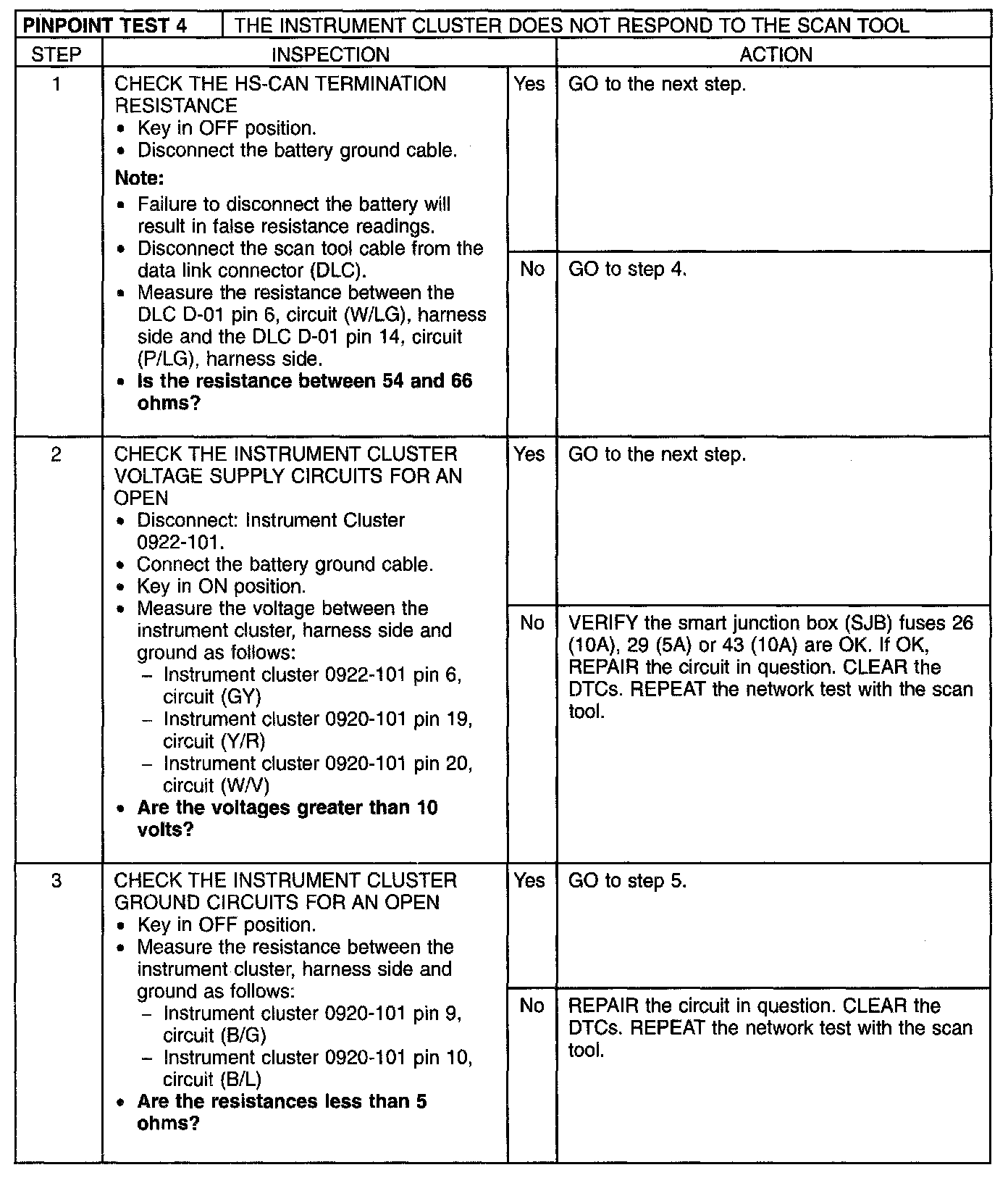 Pinpoint Test 4: The Instrument Cluster Does Not Respond to the Scan Tool