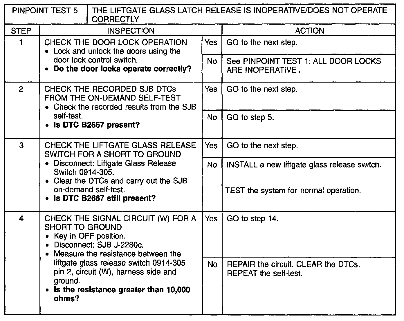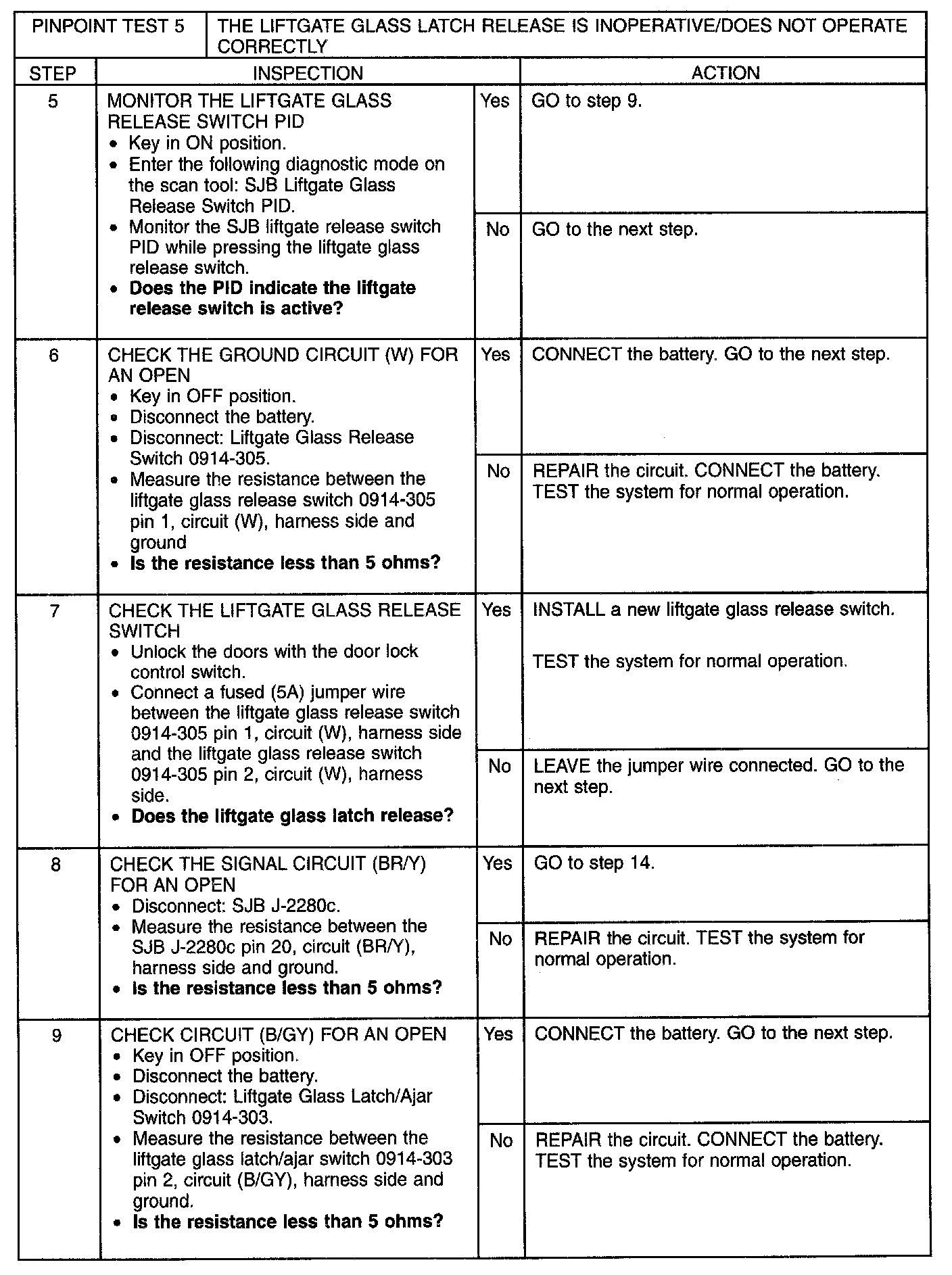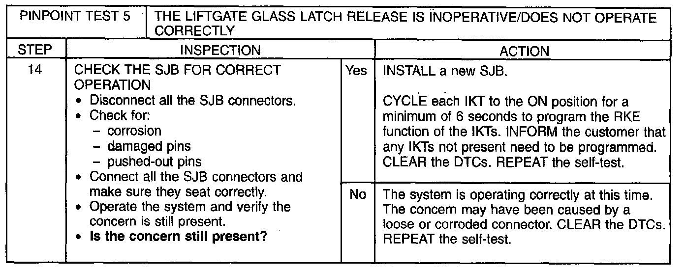 Pinpoint Test 5: The Liftgate Glass Latch Release Is Inoperative/Does Not Operate Correctly