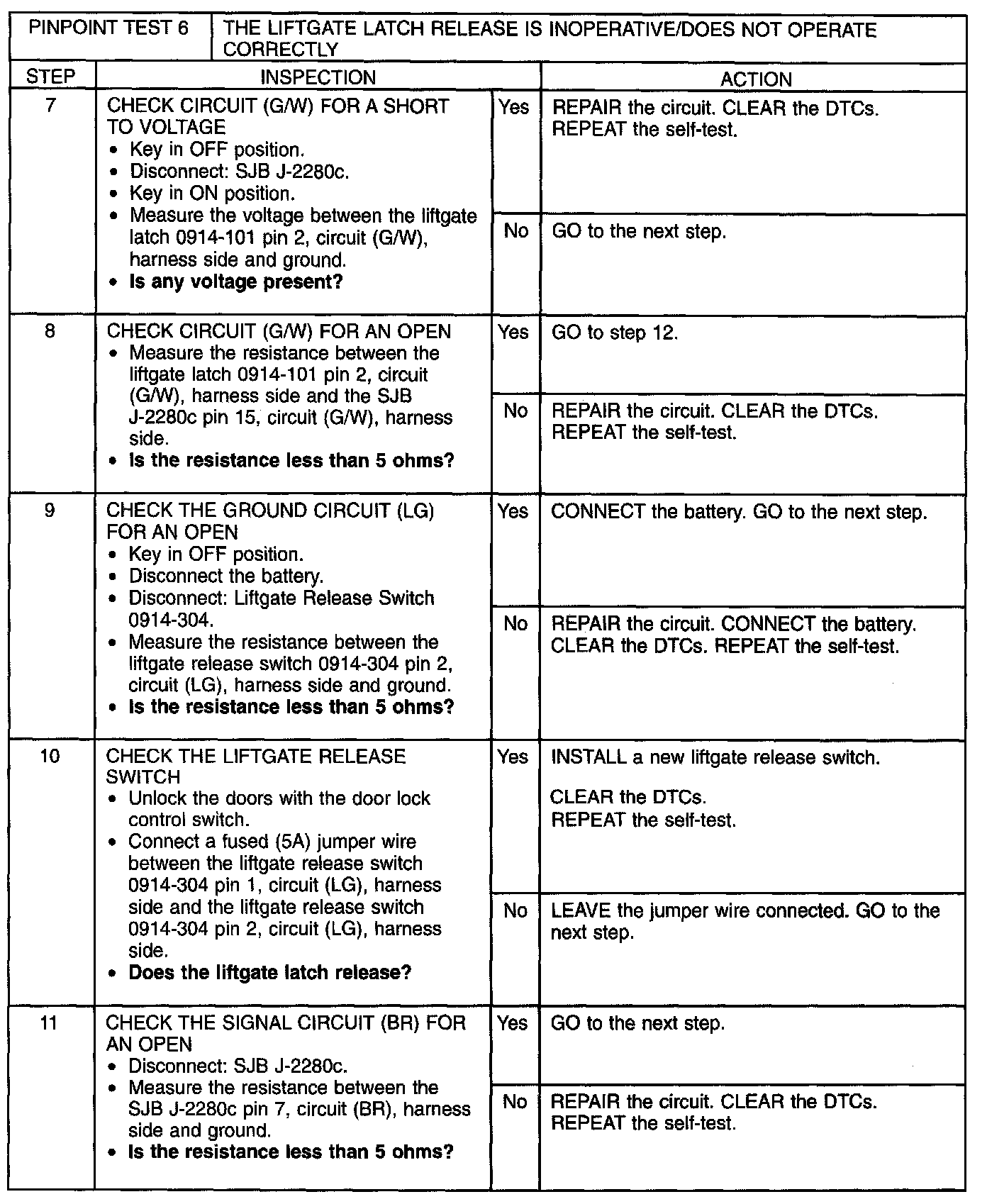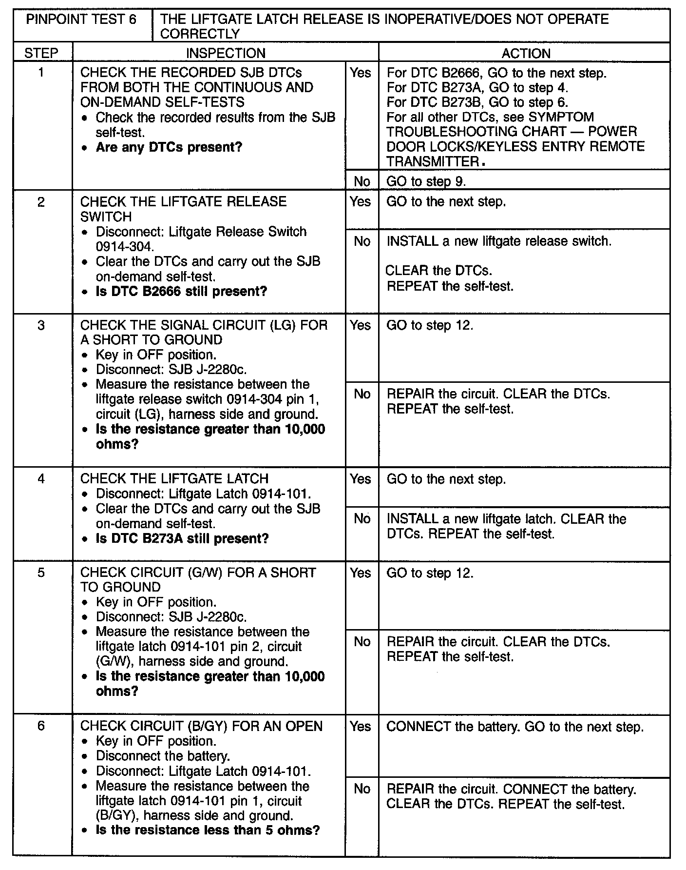 Pinpoint Test 6: The Liftgate Latch Release Is Inoperative/Does Not Operate Correctly