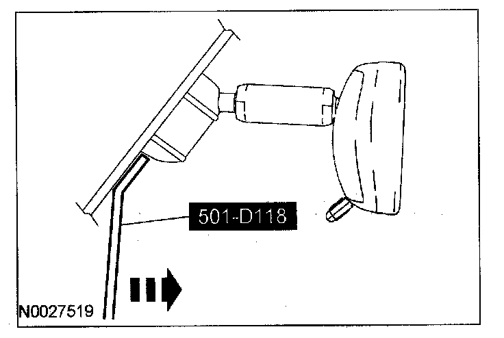 2. Using the special tool, press the mirror assembly downward along the windshield until the mount is seated on the windshield bracket.