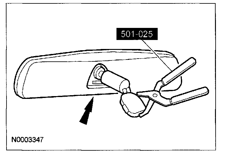 1. Insert the special tool between the mirror mount and windshield bracket from the bottom.