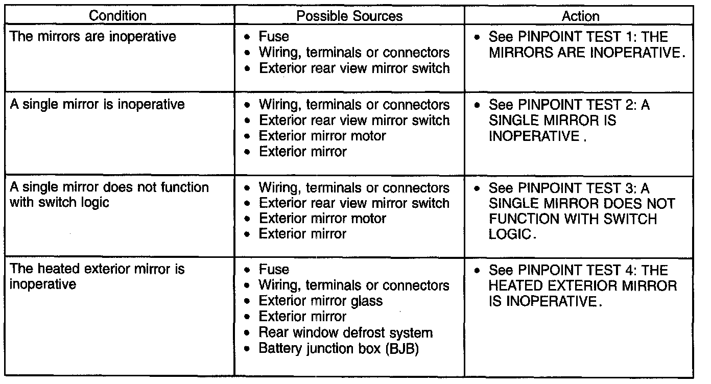Symptom Troubleshooting Chart-Power Mirrors: