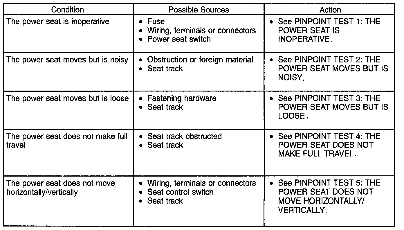 Symptom Troubleshooting Chart-Power Seat (Part 1):