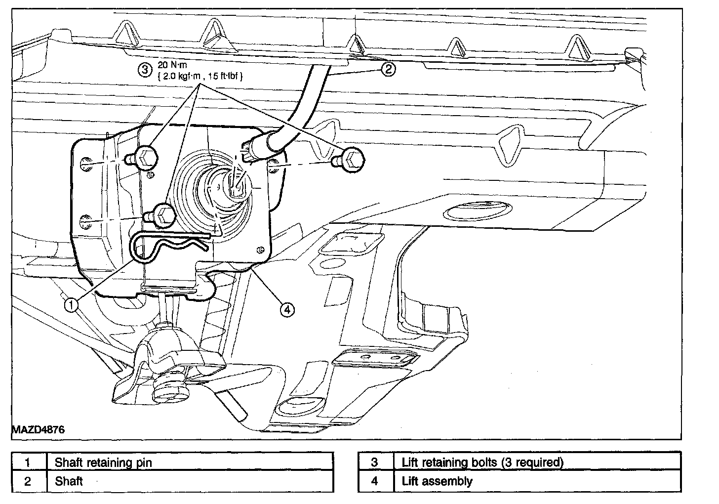 3. Remove the shaft retaining pin on the lift assembly.