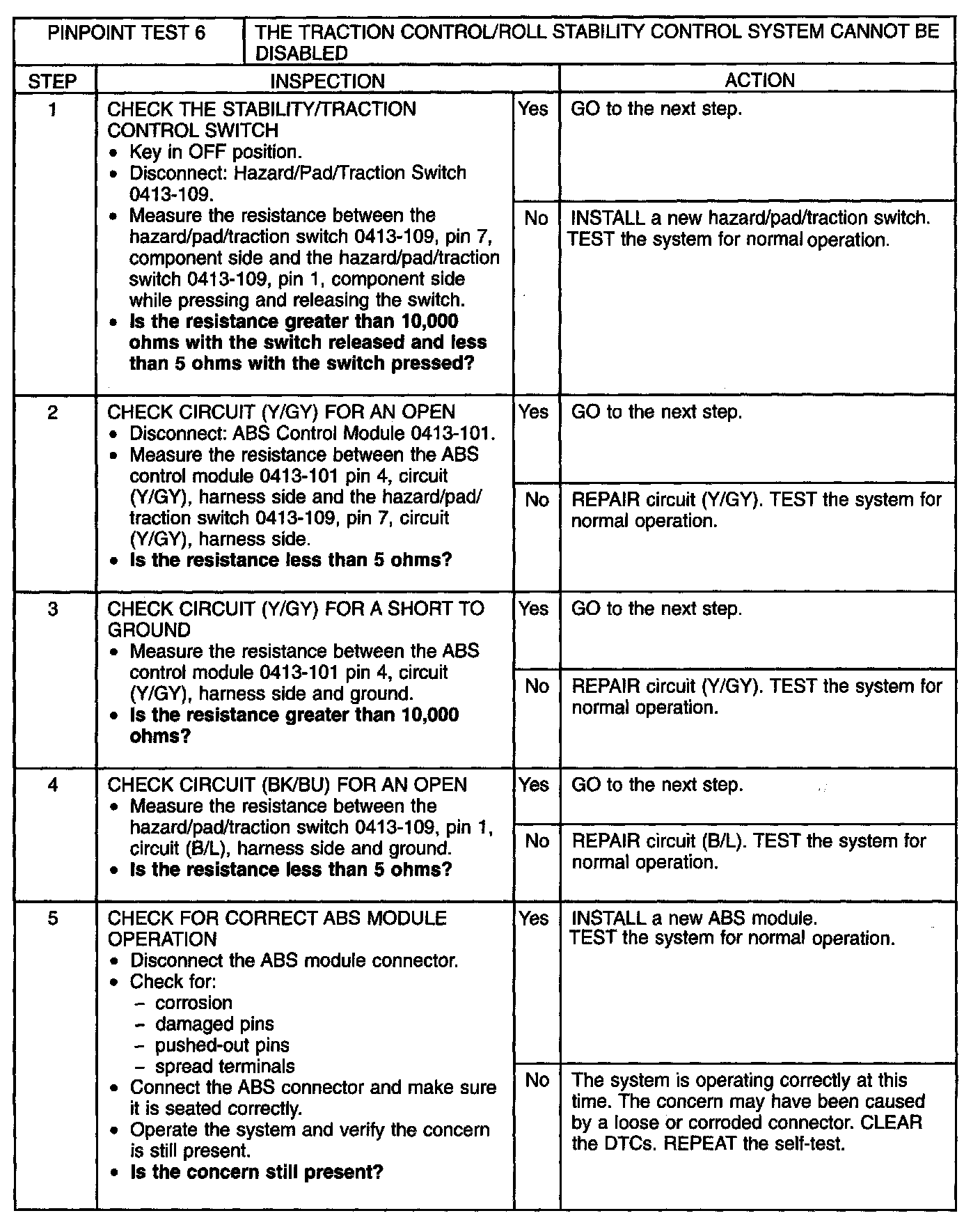 Pinpoint Test 6: The Traction Control/Roll Stability Control System Cannot Be Disabled