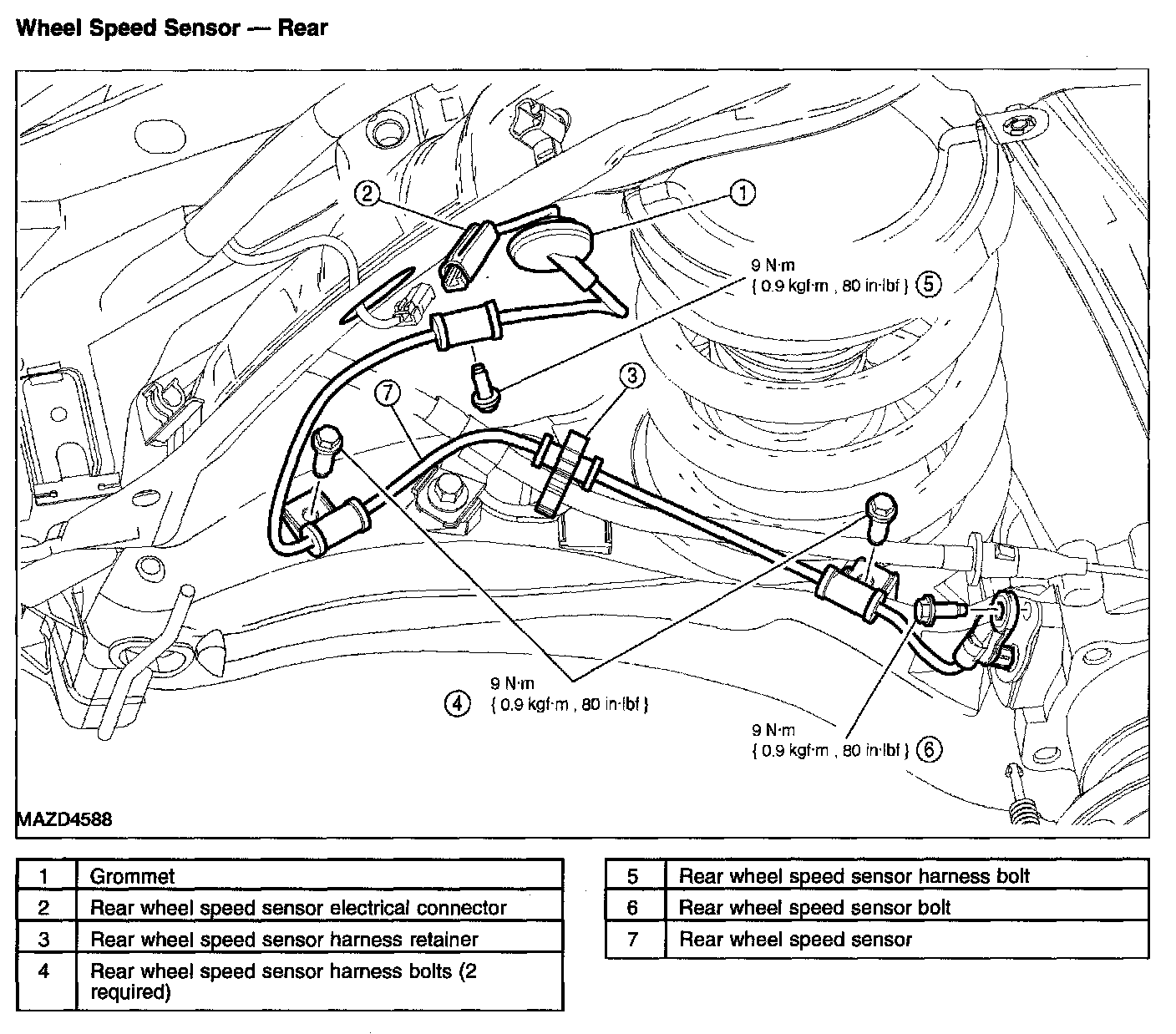 5. The rear wheel speed sensor ring is integral to the rear axle halfshaft and cannot be repaired separately.