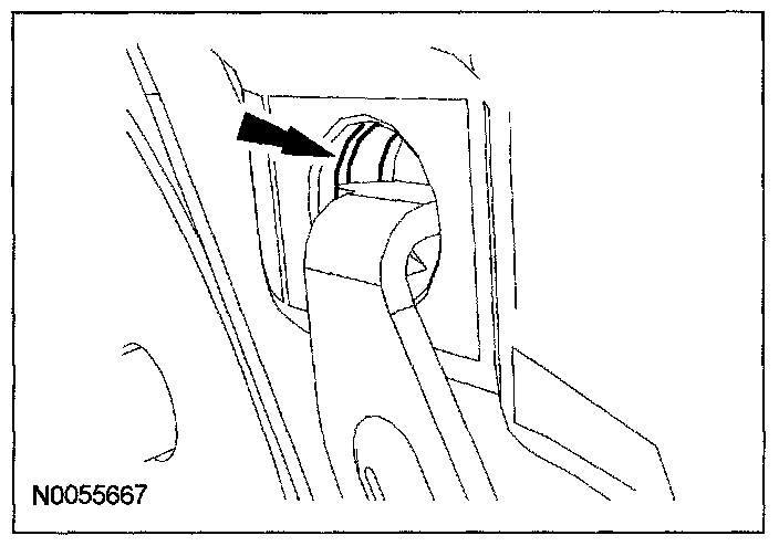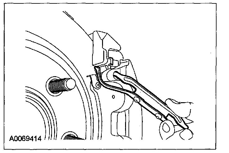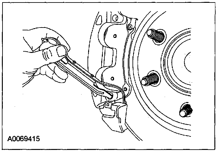 (2) Twist the tab into the cavity (LH side in the upper brake caliper cavity, RH side in the lower brake caliper cavity).