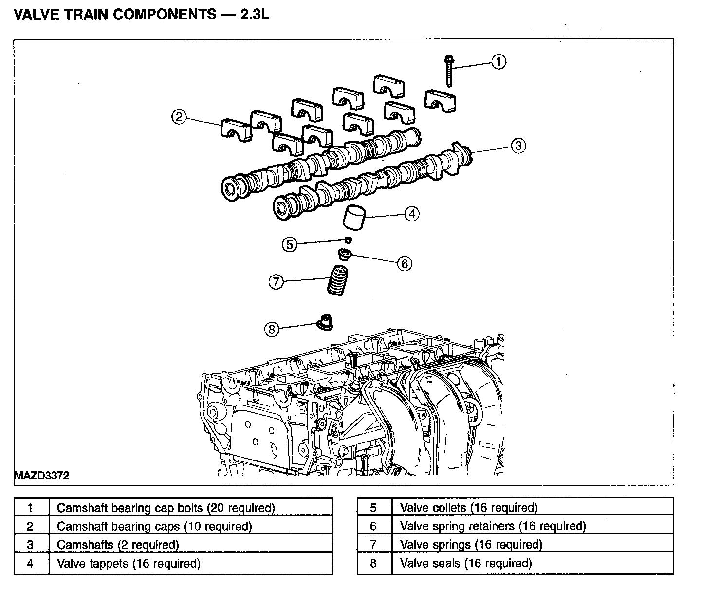 VALVE TRAIN COMPONENTS - 2.3L EXPLODED VIEW