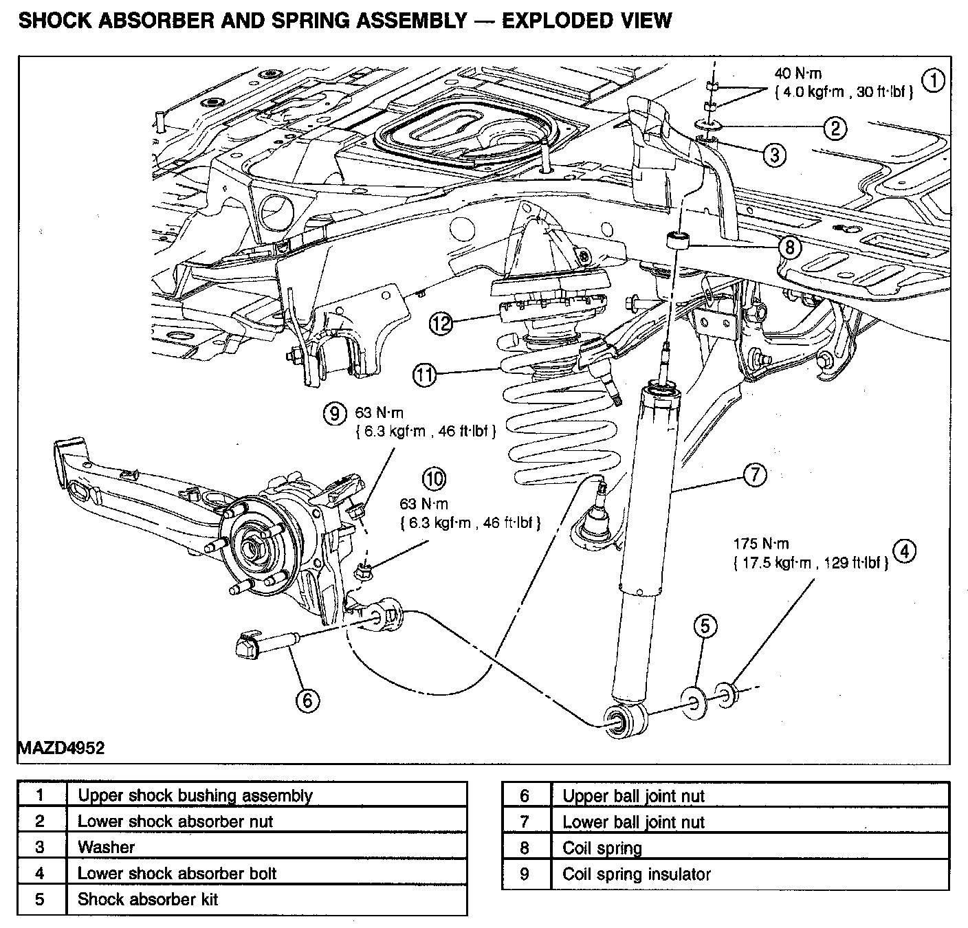 SHOCK ABSORBER AND SPRING ASSEMBLY - EXPLODED VIEW