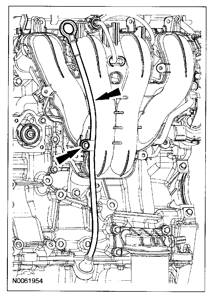 34. Disconnect the positive crankcase ventilation (PCV) hose and remove the intake manifold.