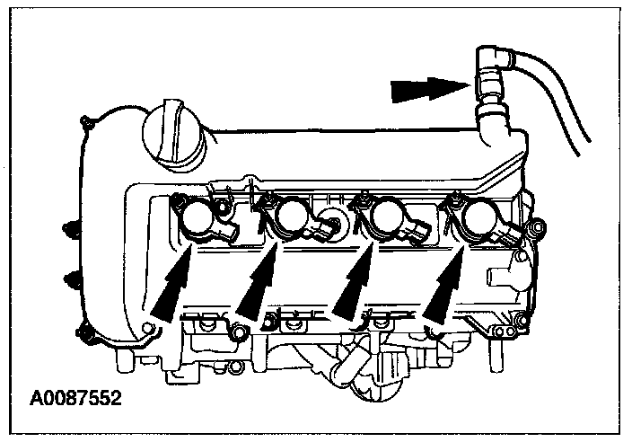 50. Remove the crankcase vent tube and the coil-on-plugs.