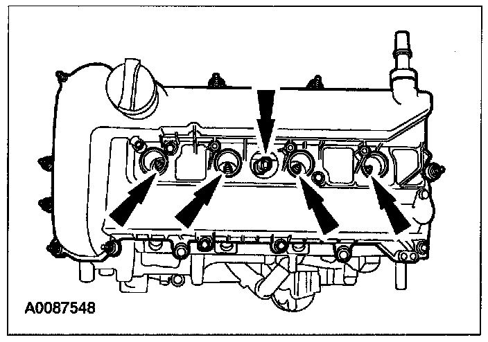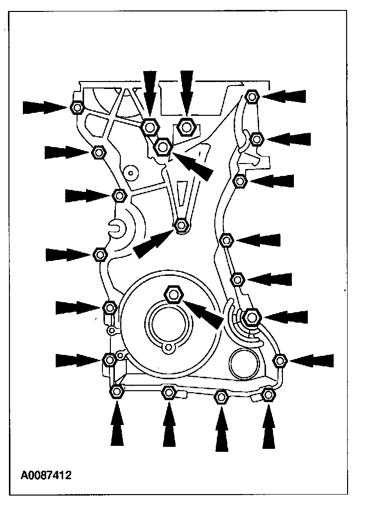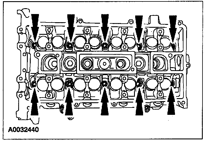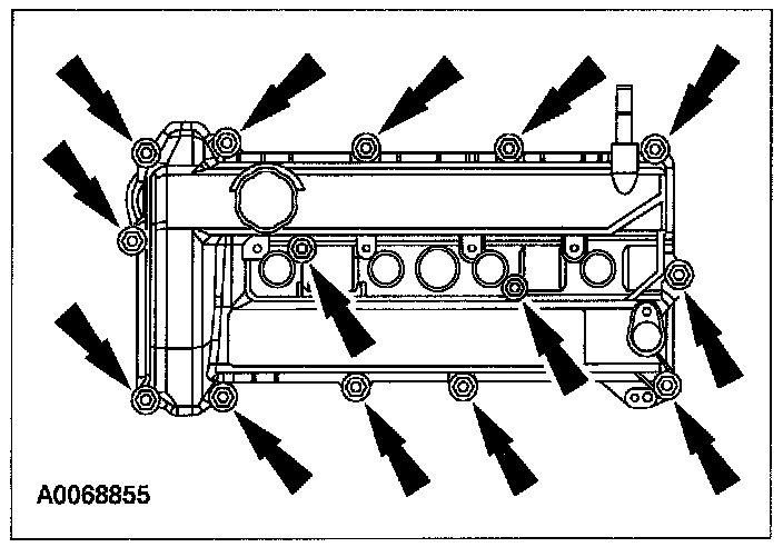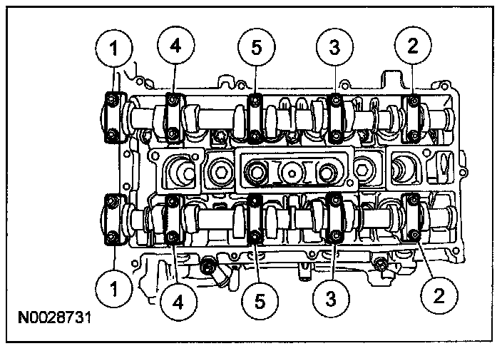 ^ Loosen the camshaft bearing bolts in the sequence shown, one turn at a time. Repeat until all the tension is released.