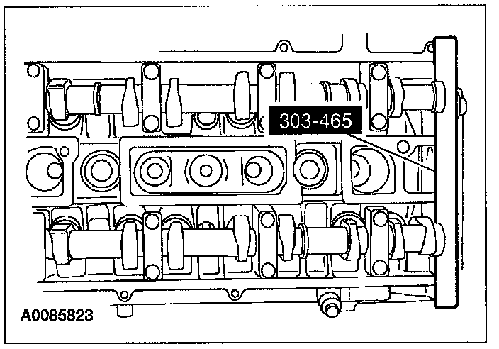 ^ The special tool 303-465 is for camshaft alignment only. Using this tool to prevent engine rotation can result in engine damage.