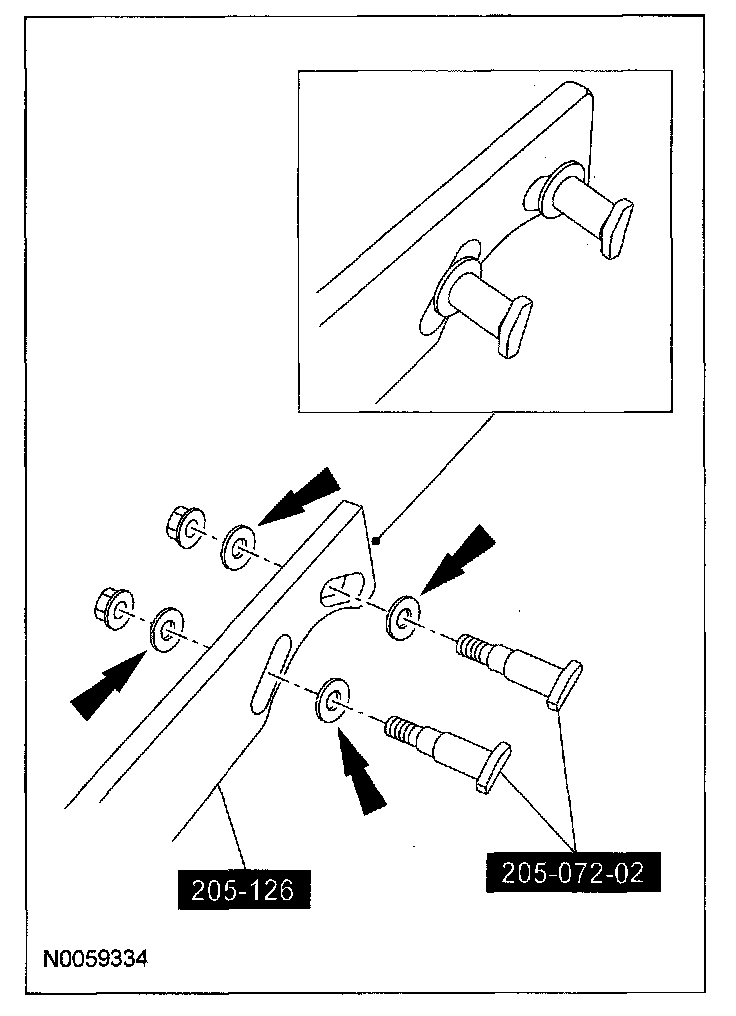 57. Assemble the special tools using 4 hardened washers in the locations shown.