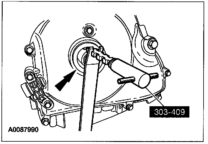 ^ Use care not to damage the engine front cover or the crankshaft when removing the seal.