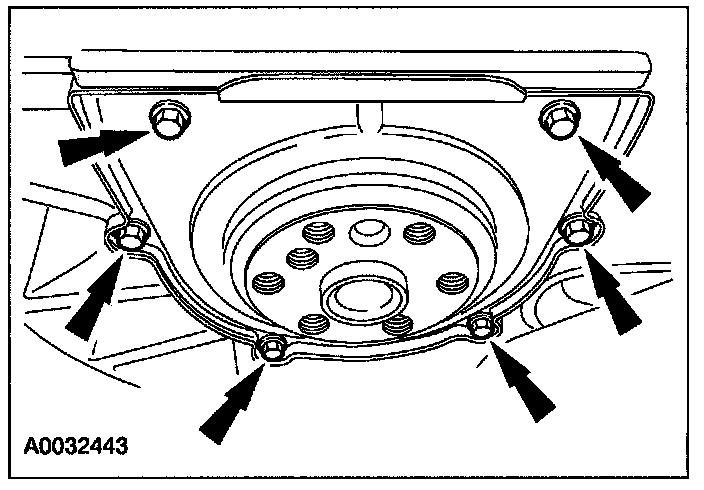 ^ Remove and discard the crankshaft pulley bolt and washer.
