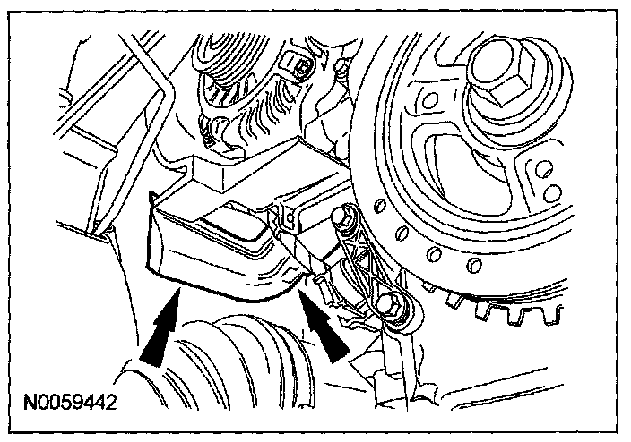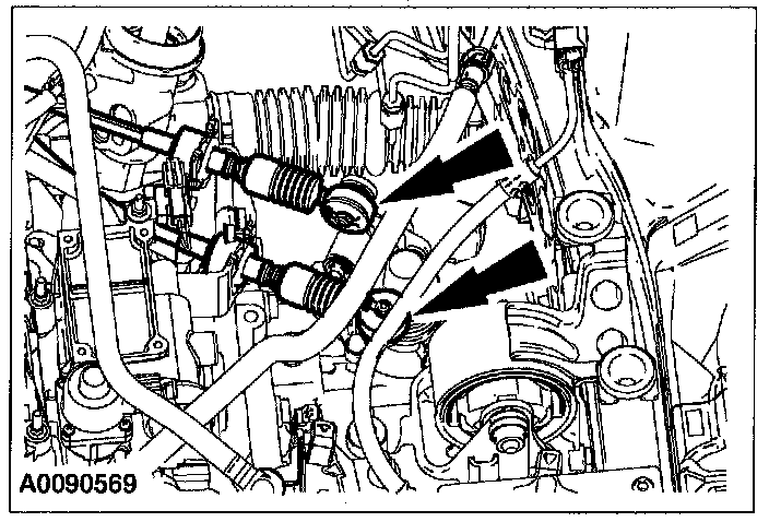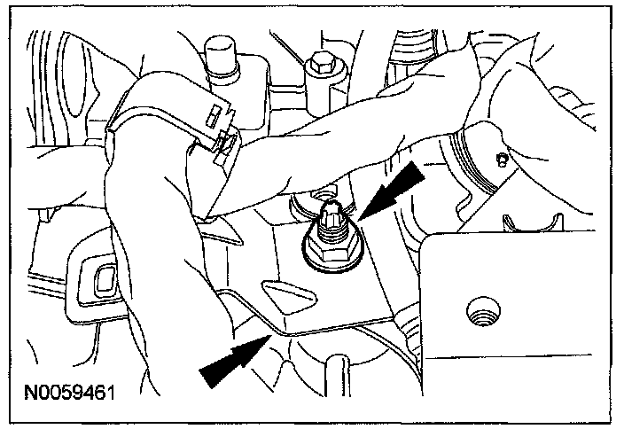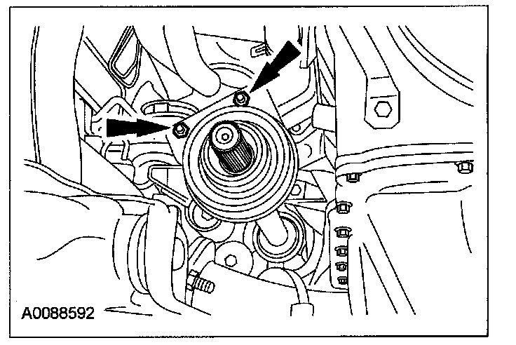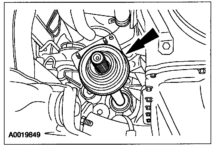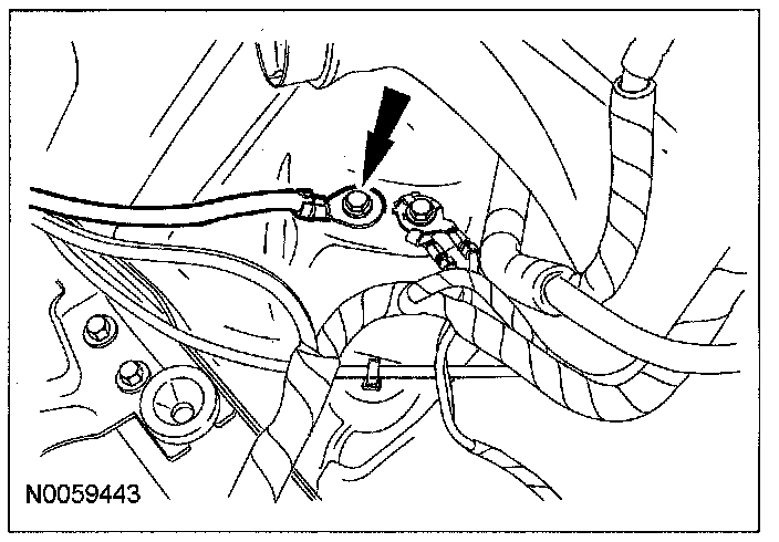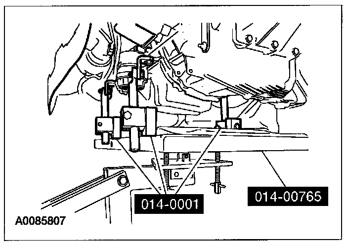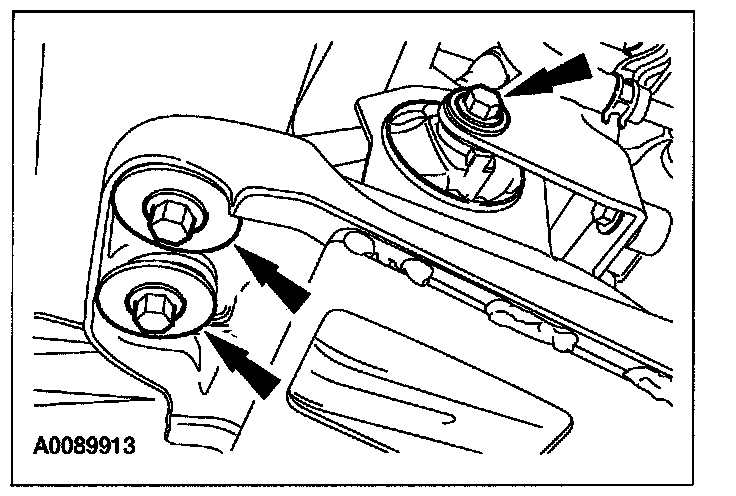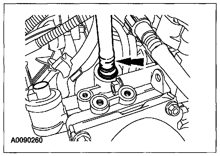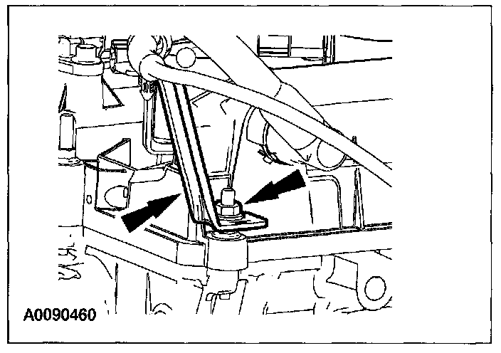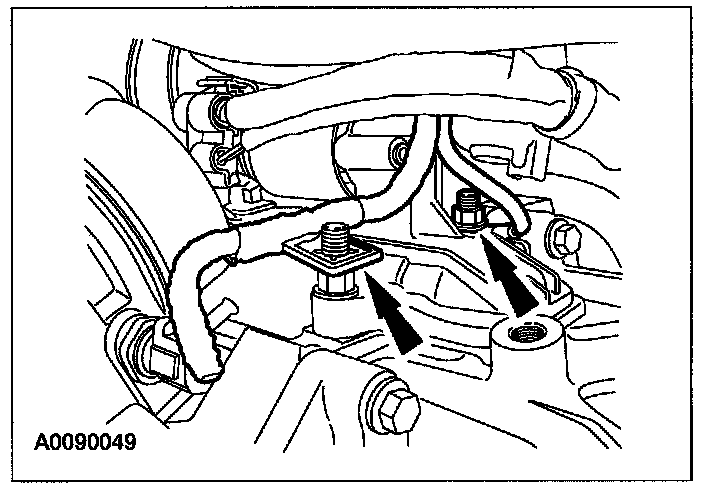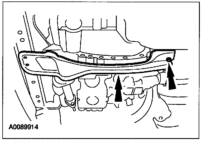 ^ Tighten the engine support crossmember bolts to 90 Nm (9.1 kgf-m, 66 ft-lb).