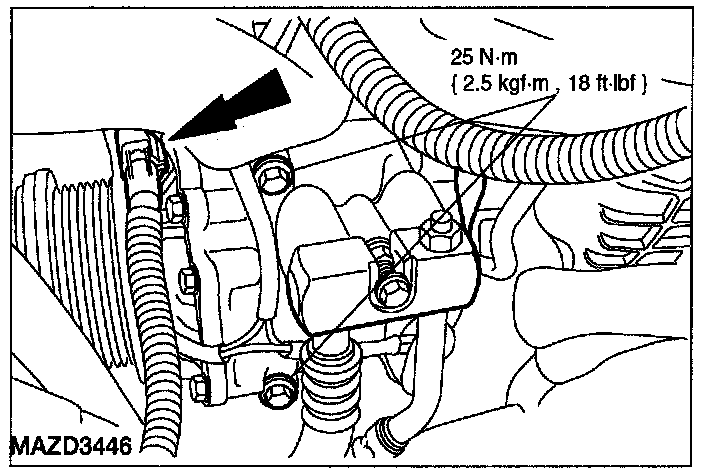 ^ Tighten to 25 N-m (2.5 kgf-m, 18 ft-lbf).