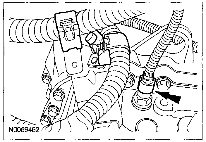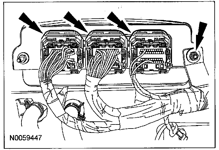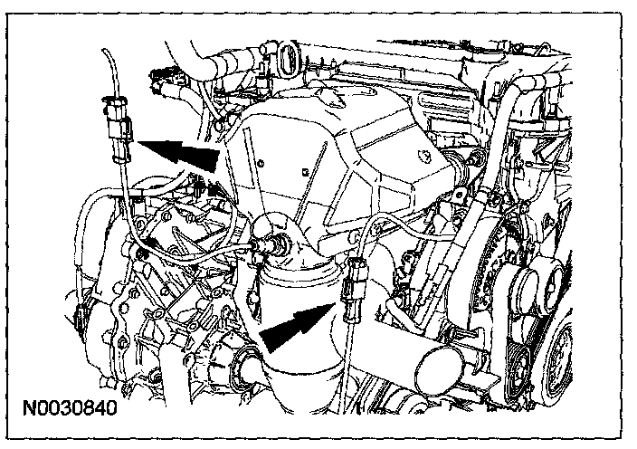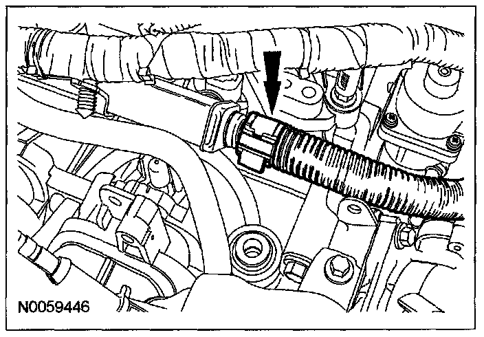 55. Connect the heated oxygen sensor (HO2S) and the catalyst monitor sensor electrical connectors.