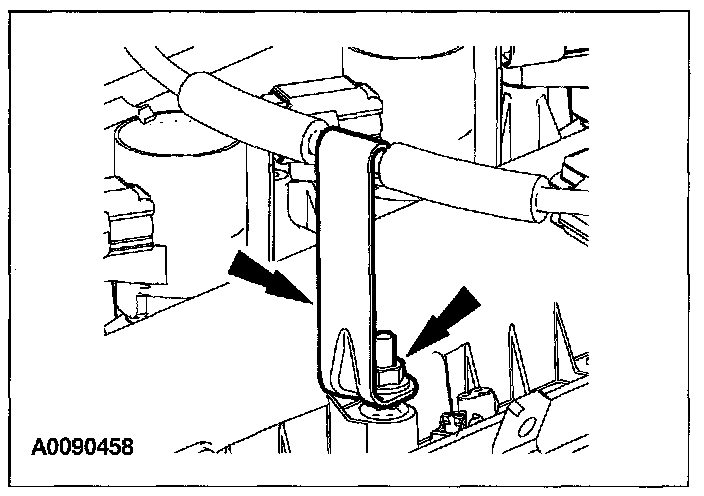 31. If equipped, route the block heater wiring harness and attach all the retainers.