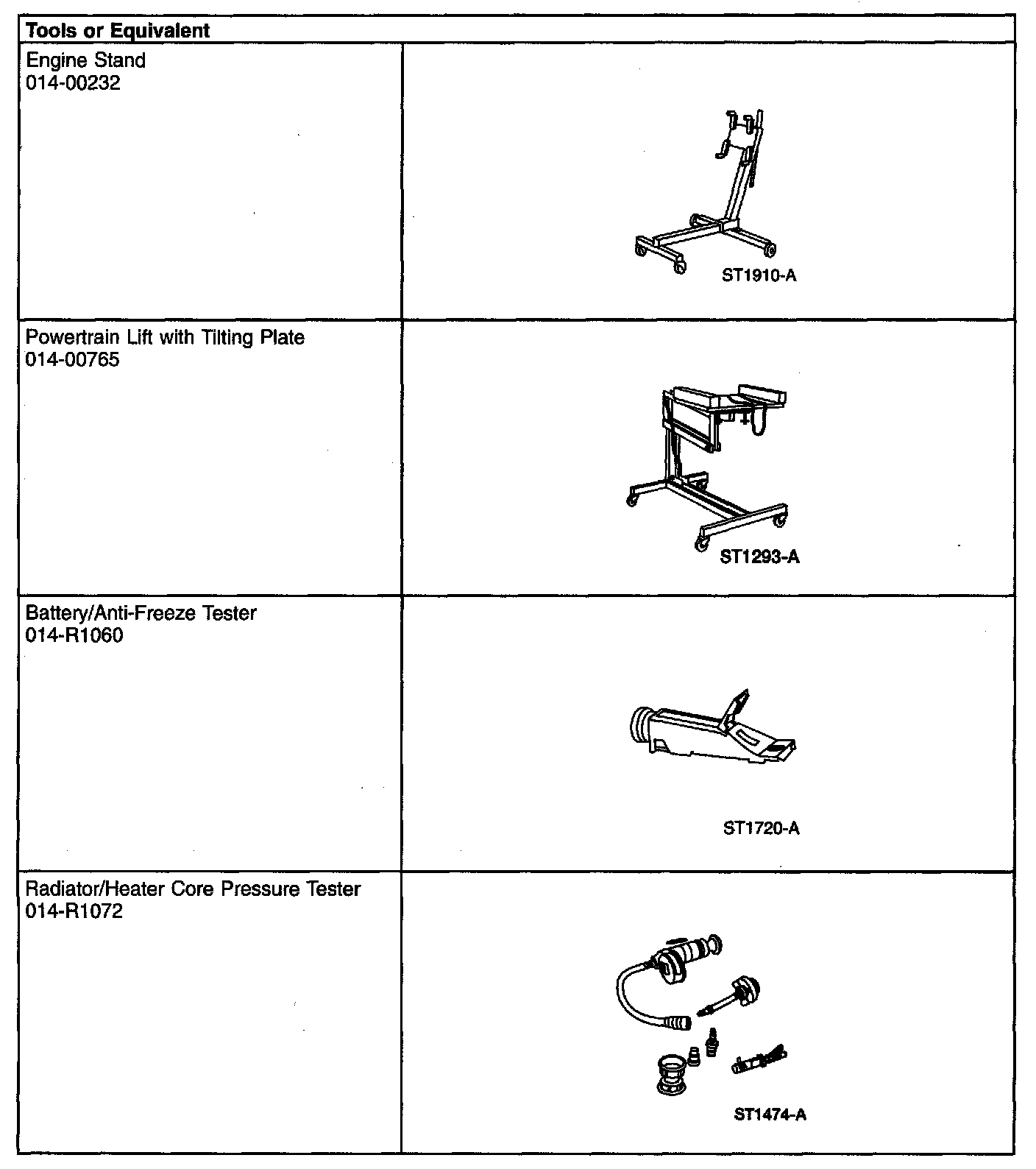 Engine: Tools and Equipment
