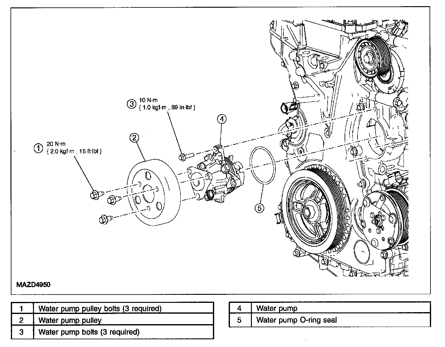 WATER PUMP - 2.3L REMOVAL/INSTALLATION1. With the vehicle in NEUTRAL, position it on a hoist.