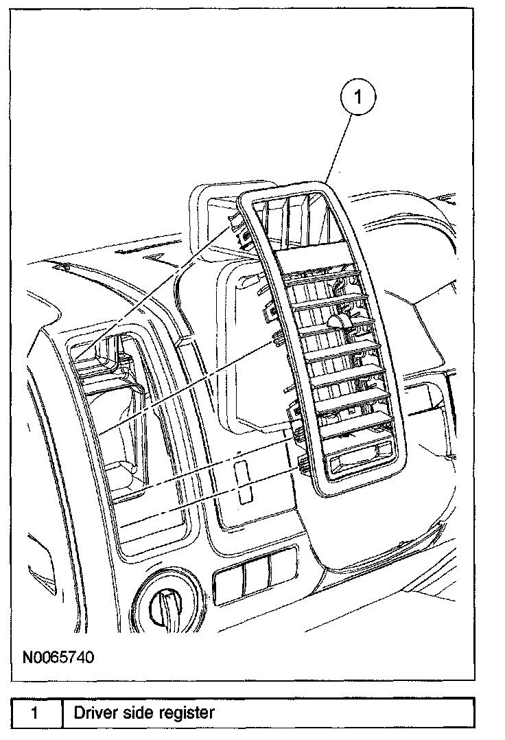 REGISTER - DRIVER SIDE REMOVAL/INSTALLATION1. Using a suitable tool, gently pry to disengage the register clips from the instrument panel while working around the perimeter of the register.
