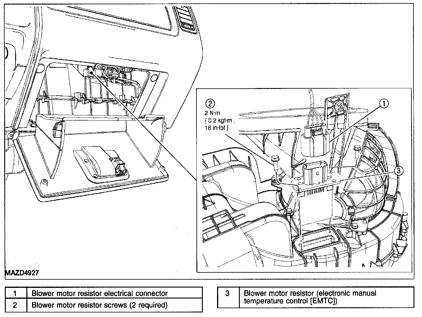 BLOWER MOTOR RESISTOR REMOVAL/INSTALLATIONNOTE: Blower motor resistor shown. Blower motor speed control similar.