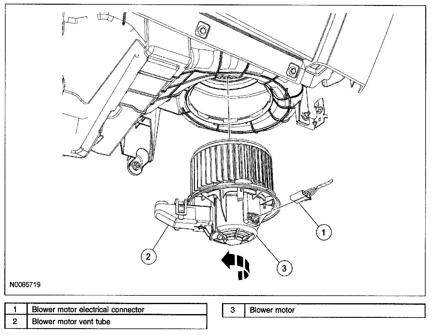 3. Rotate the blower motor counterclockwise to disengage it from the housing and remove the blower motor.