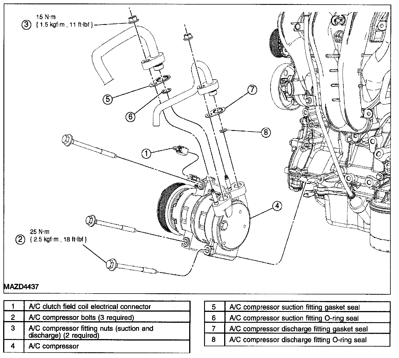 AIR CONDITIONING (A/C) COMPRESSOR - 2.3L REMOVAL/INSTALLATIONCAUTION: