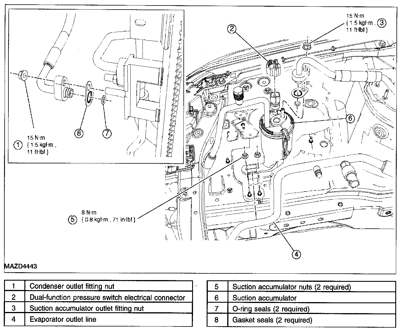 - To install, tighten to 8 N.m (0.8 kgf.m, 71 in.lbf).
