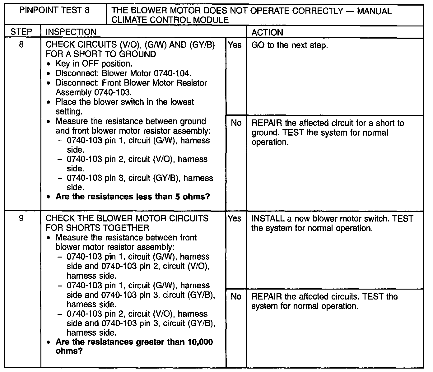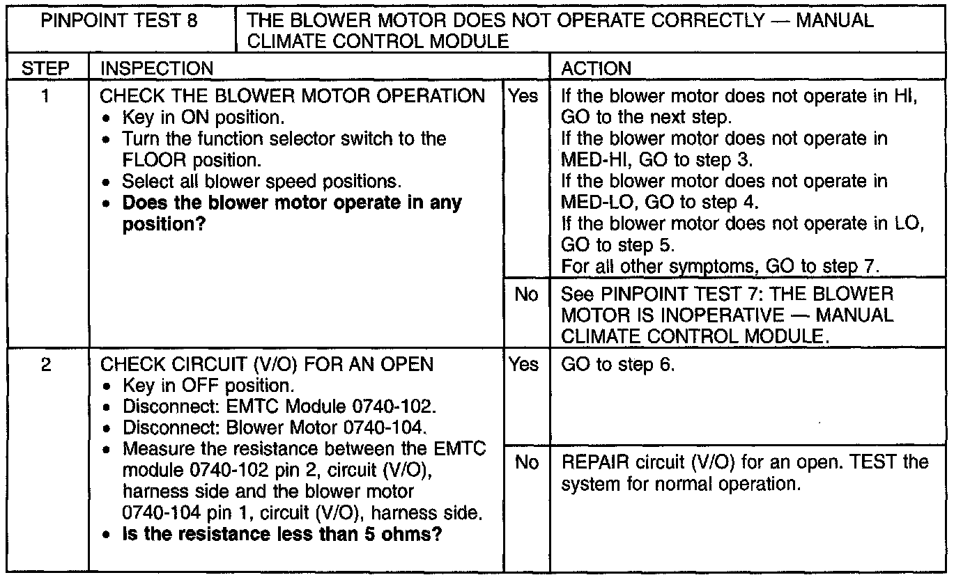 Pinpoint Test 8: The Blower Motor Does Not Operate Correctly - Electronic Manual Temperature Control Module (Emtc)