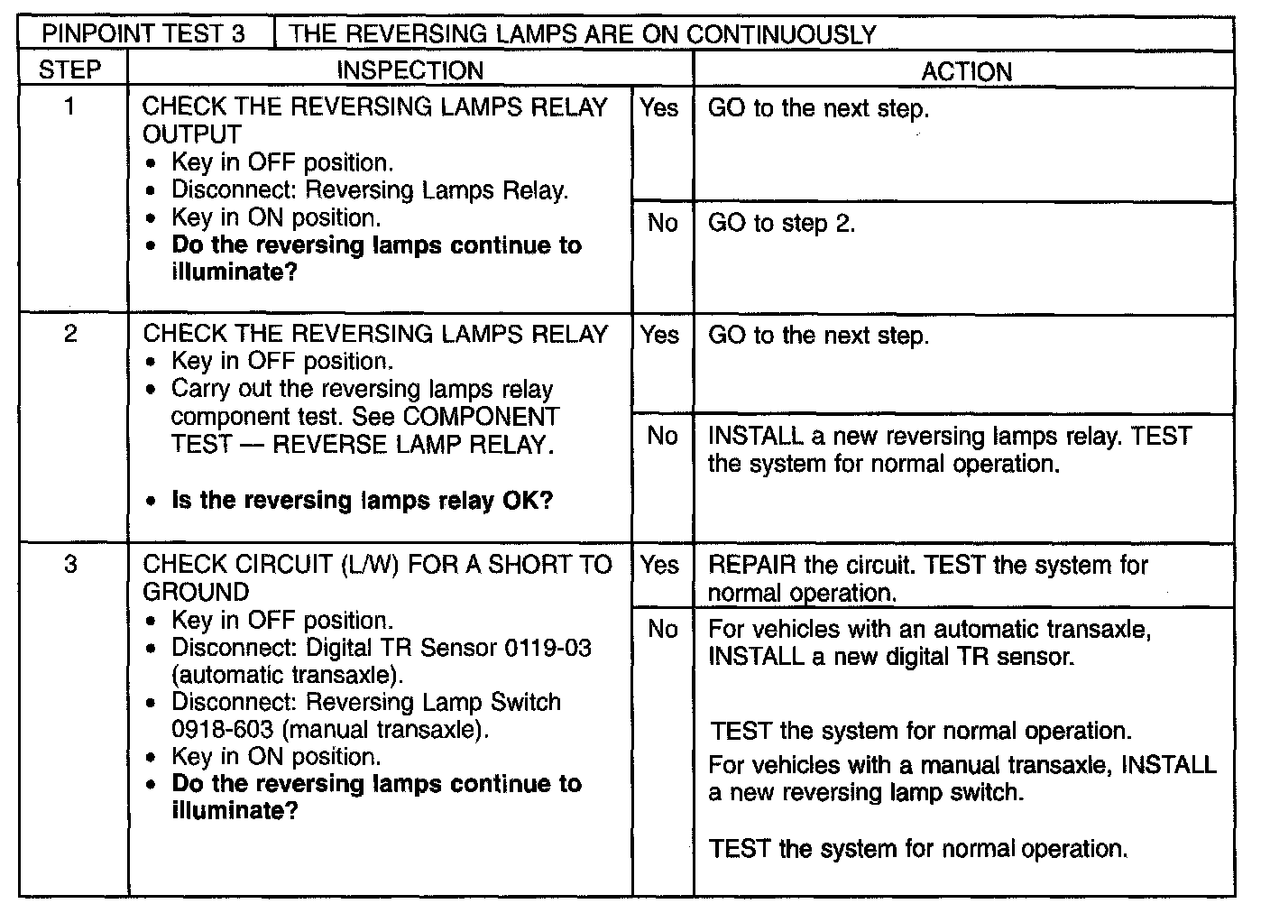 PINPOINT TEST 3: THE REVERSING LAMPS ARE ON CONTINUOUSLYNormal Operation