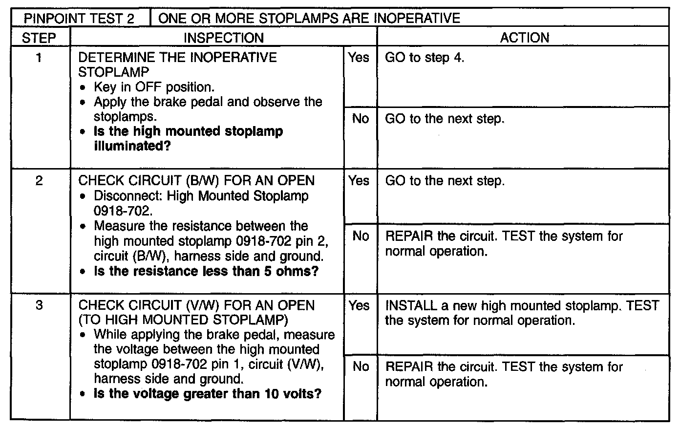 PINPOINT TEST 2: ONE OR MORE STOPLAMPS ARE INOPERATIVENormal Operation
