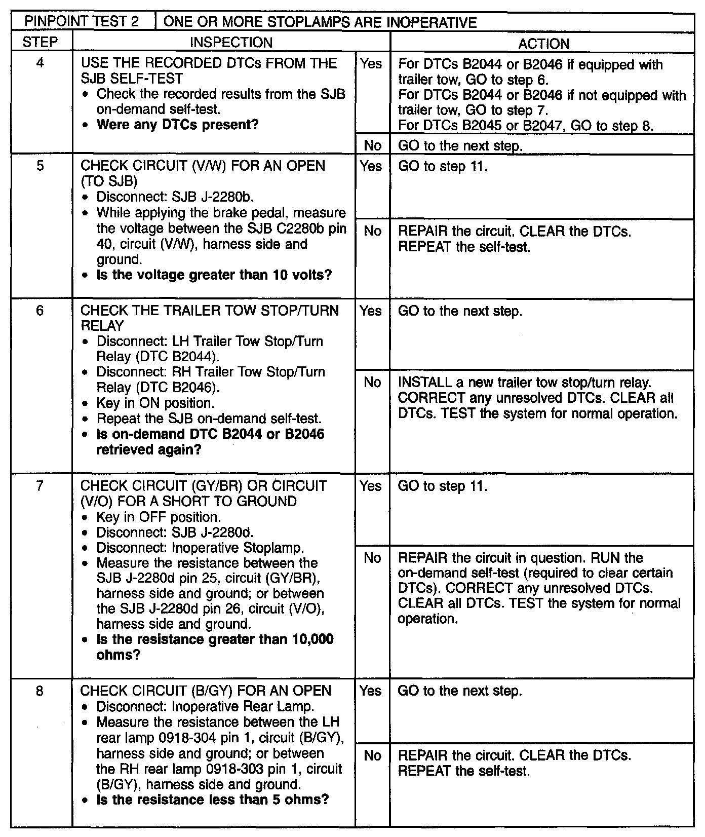 - DTC B2046 (Right Rear Stop Lamp Circuit Short to Ground) - is a continuous and on-demand DTC that sets when the SJB detects a short to ground on the RH rear stop/turn lamp voltage supply circuit.