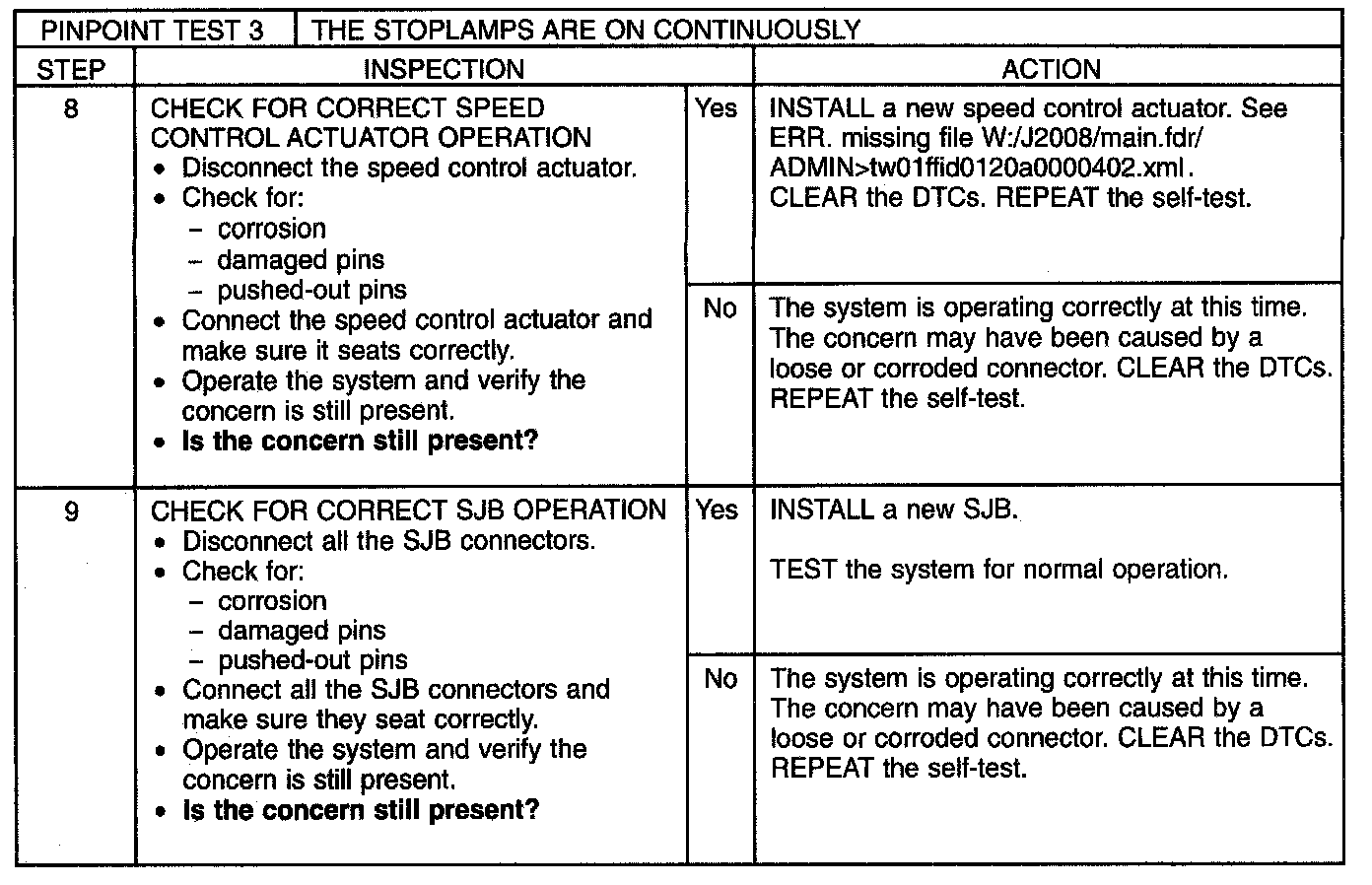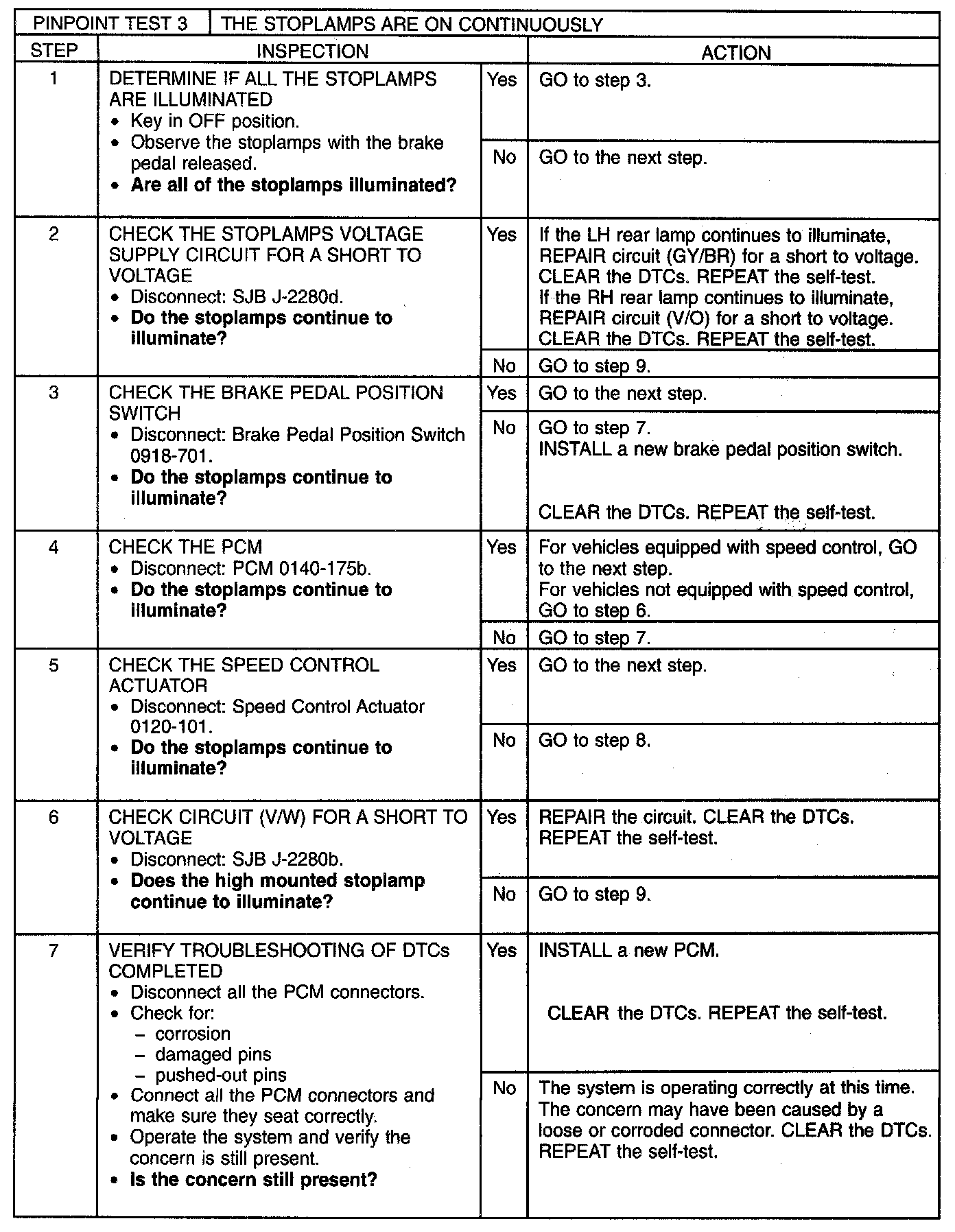 PINPOINT TEST 3: THE STOPLAMPS ARE ON CONTINUOUSLYNormal Operation