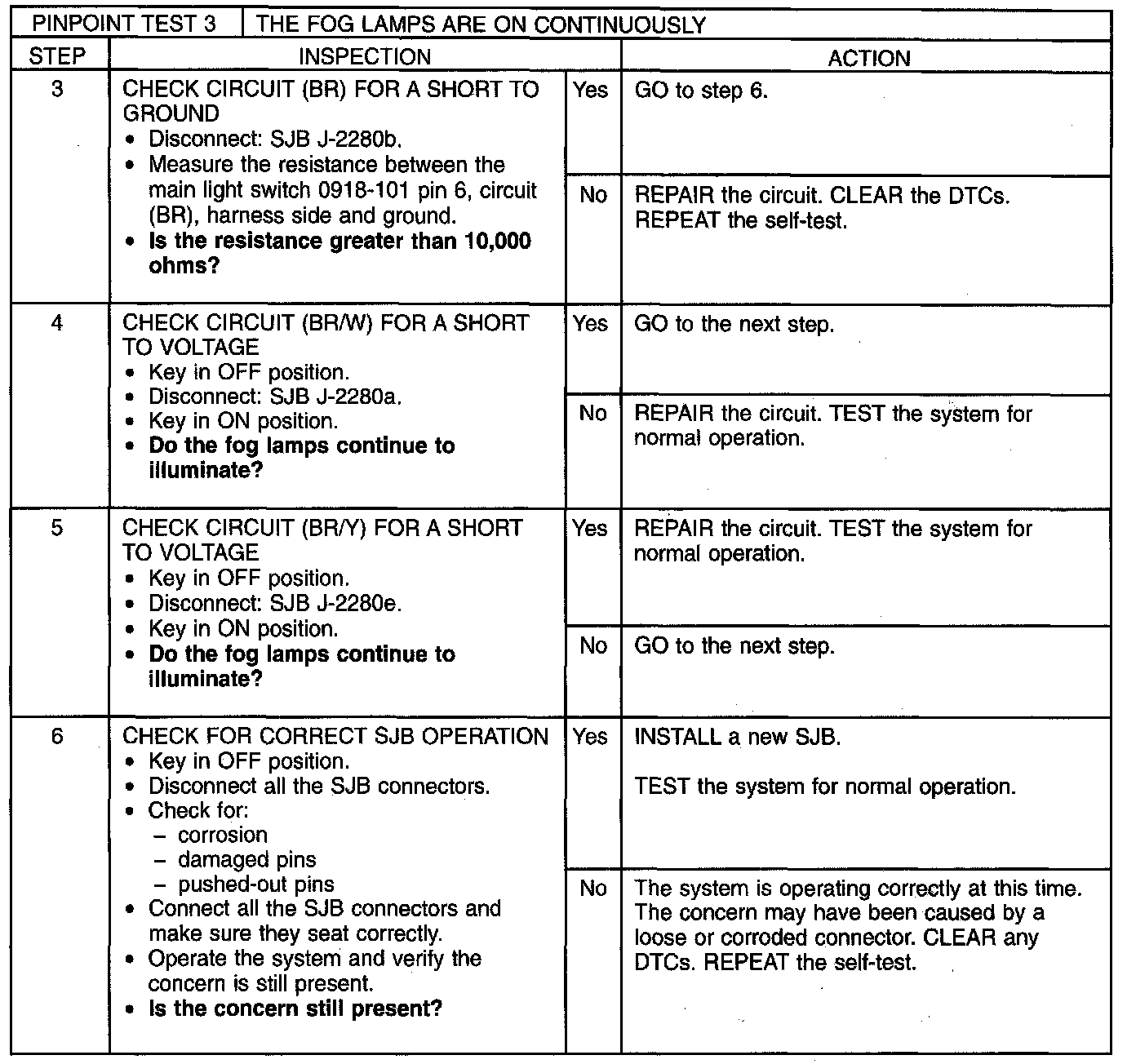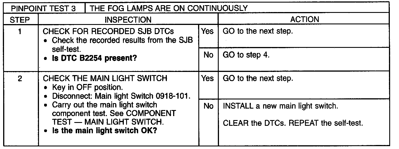 PINPOINT TEST 3: THE FOG LAMPS ARE ON CONTINUOUSLYNormal Operation