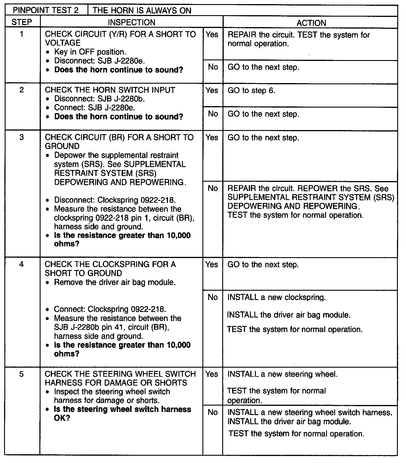 PINPOINT TEST 2: THE HORN IS ALWAYS ONNormal Operation