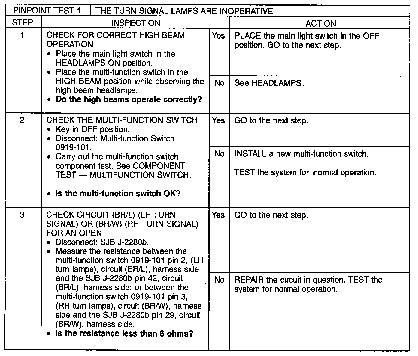 PINPOINT TEST 1: THE TURN SIGNAL LAMPS ARE INOPERATIVENormal Operation