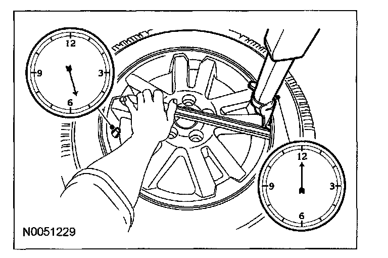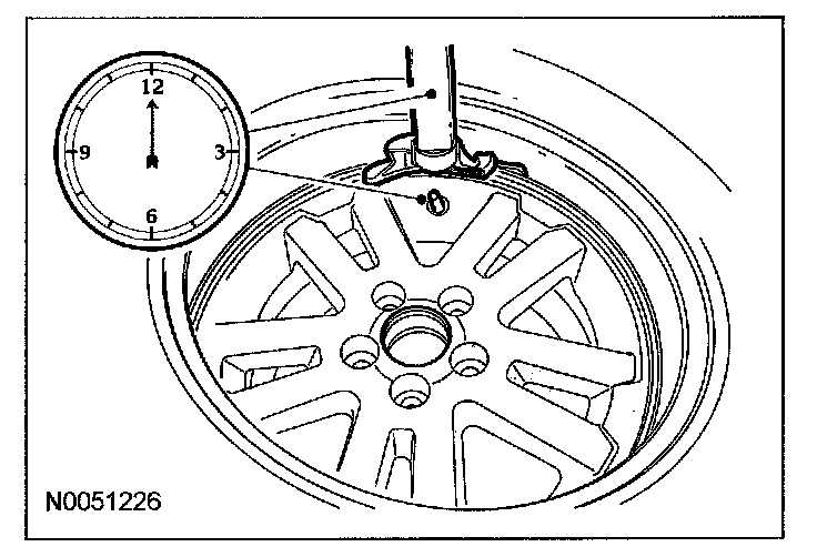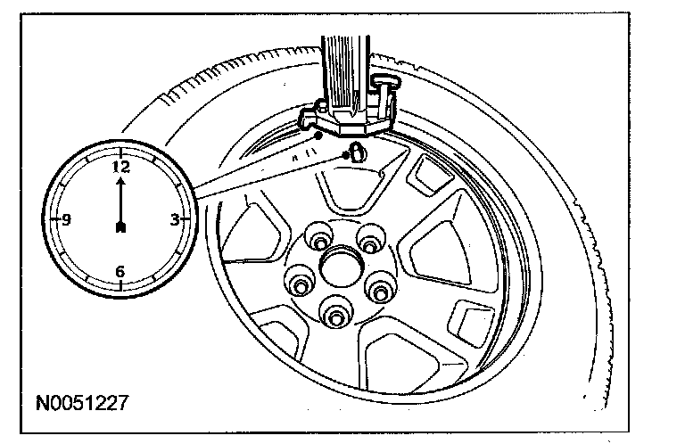 ^ Index-mark the valve stem and wheel weight positions on the tire.
