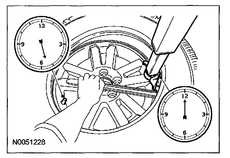 3. Place the wheel and tire assembly on the turntable of the tire machine with the valve stem between the 5 and 6 o'clock positions and the machine arm at the 12 o'clock position and dismount the outer bead from the wheel.