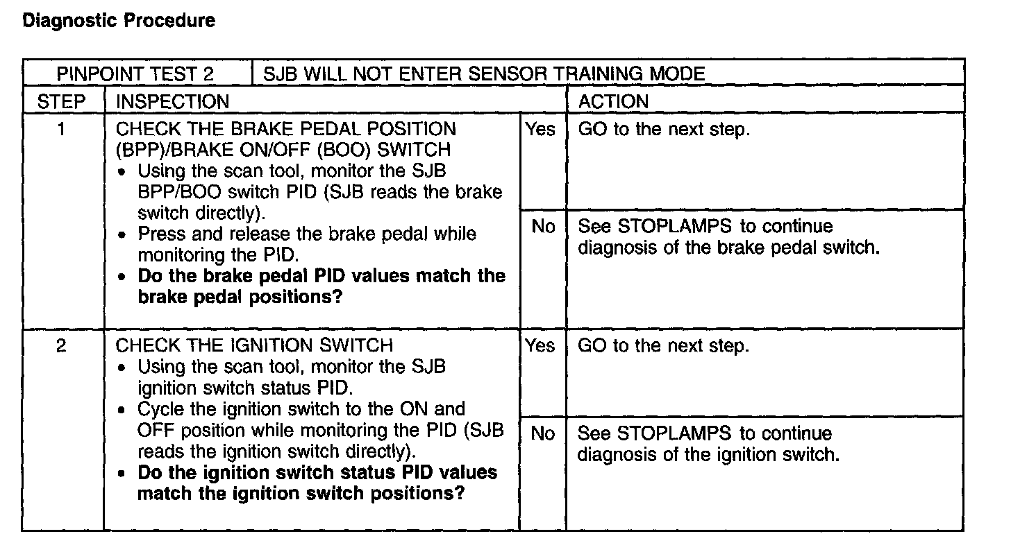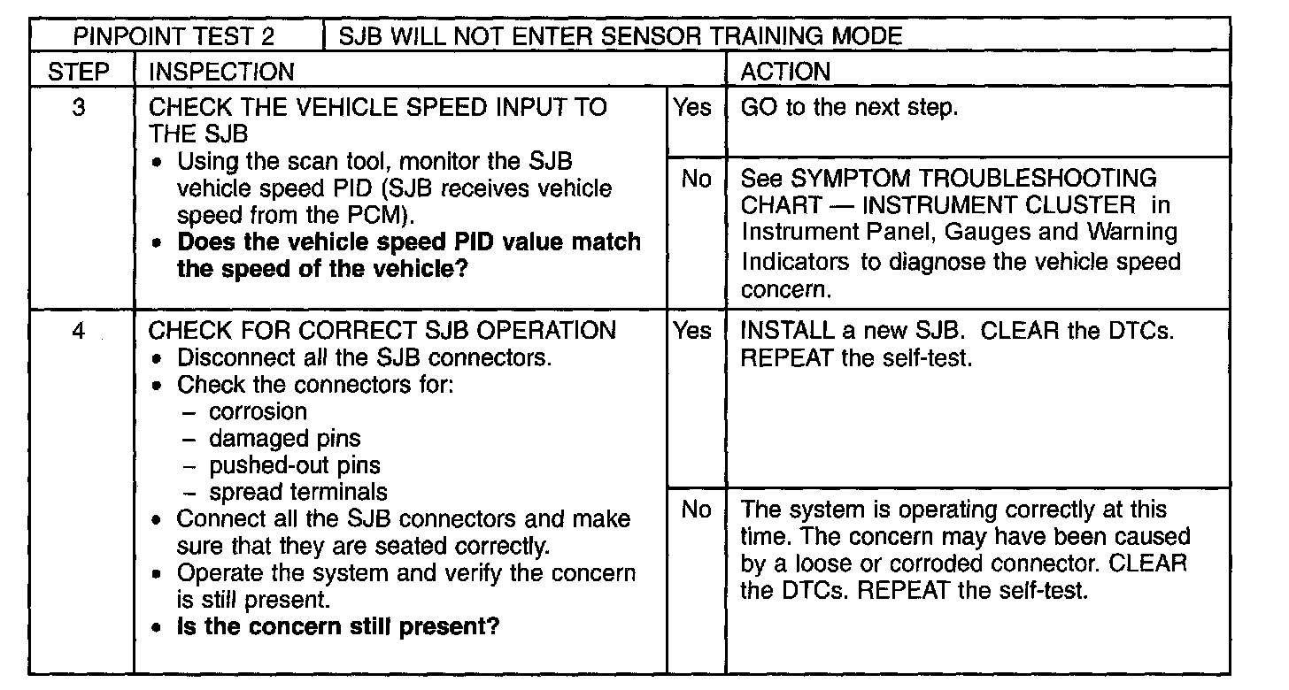 Pinpoint Test 2: SJB Will Not Enter Sensor Training Mode