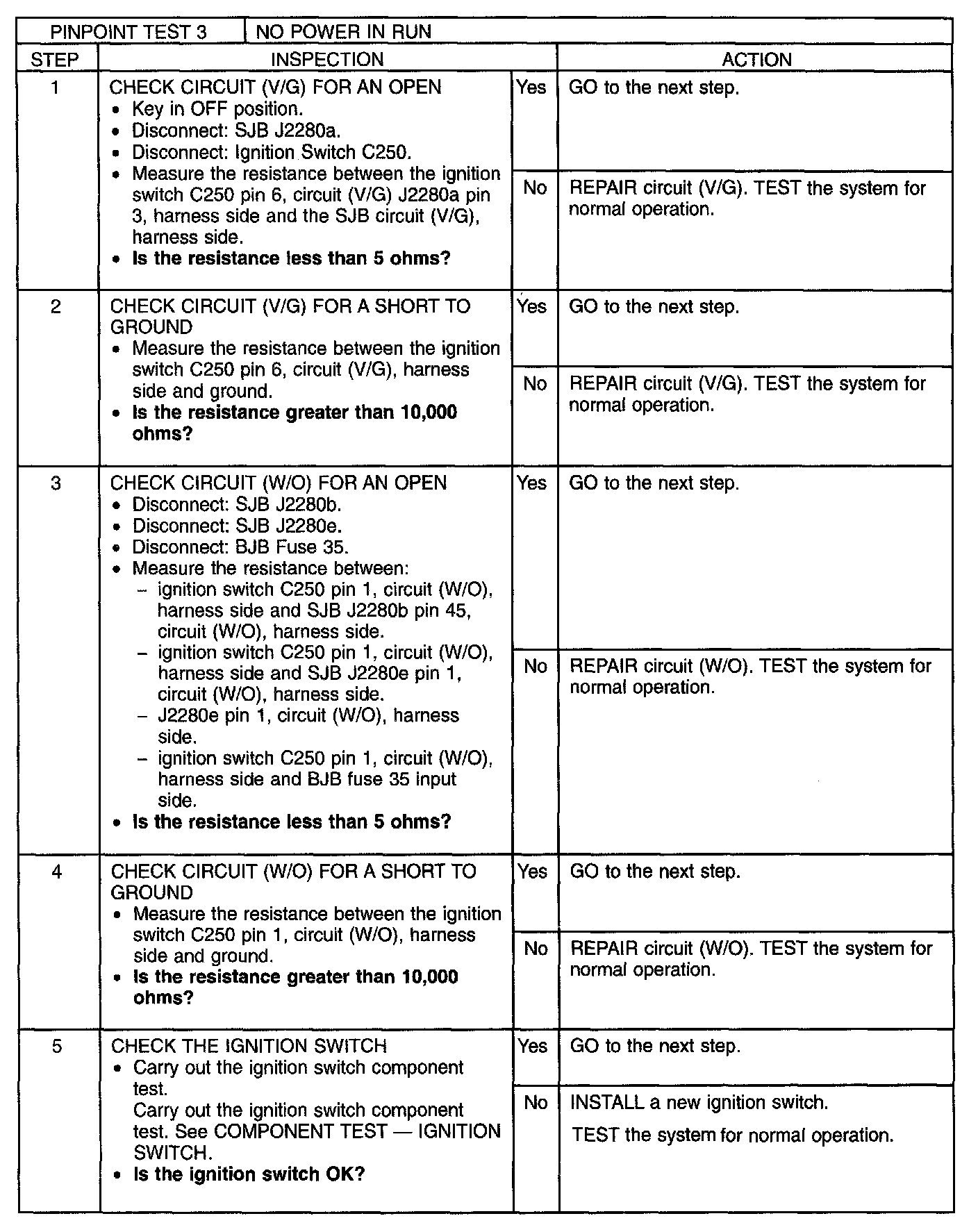 PINPOINT TEST 3: NO POWER IN RUNNormal Operation