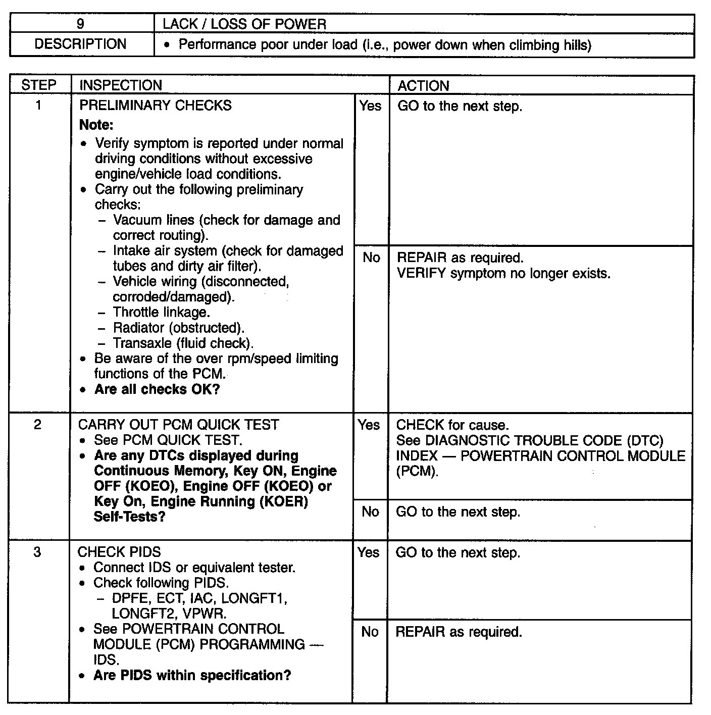 No. 9: Lack/Loss of Power