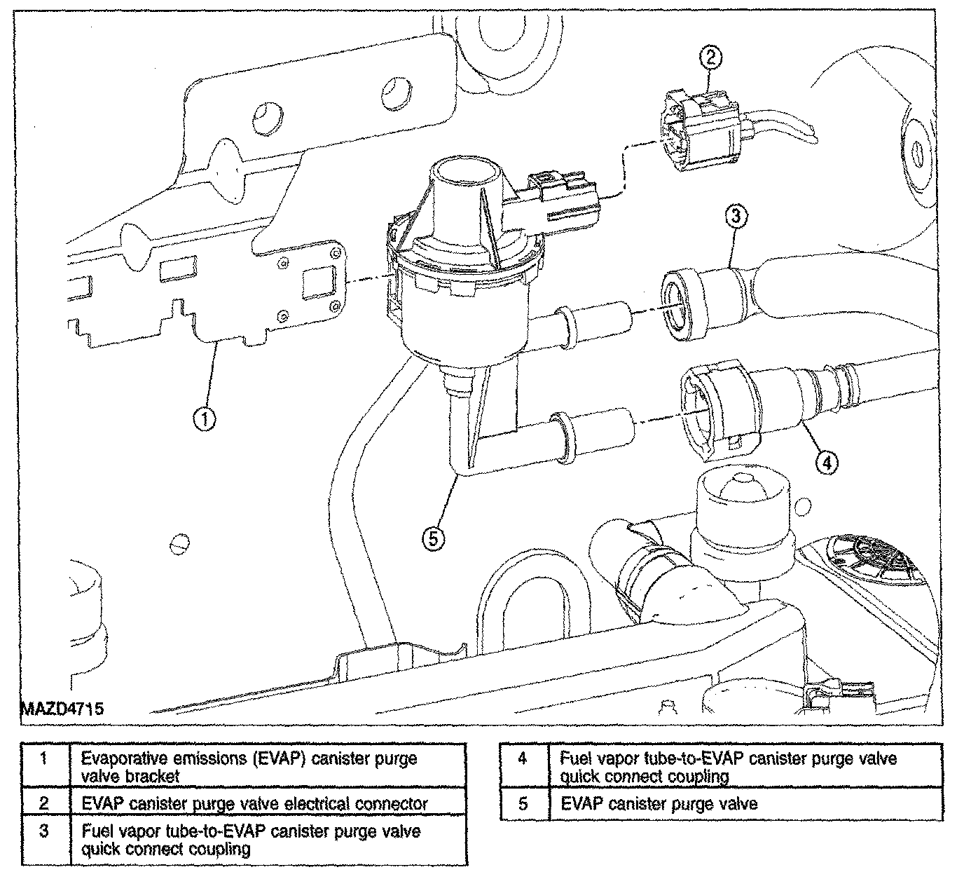 EVAPORATIVE EMISSIONS CANISTER PURGE VALVE REMOVAL/INSTALLATION1. Disconnect the evaporative emissions (EVAP) canister purge valve electrical connector.