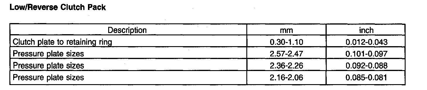 Low/Reverse Clutch Pack:
