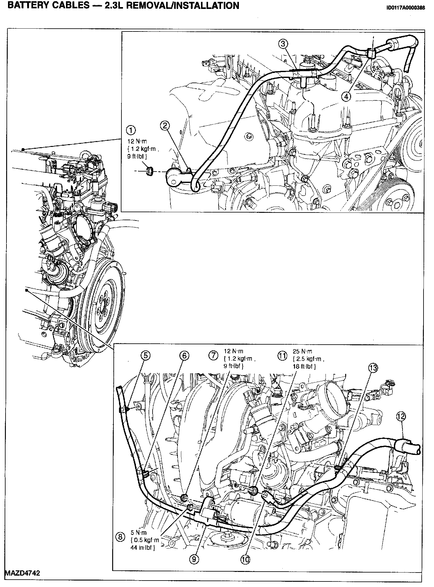 BATTERY CABLES - 2.3L REMOVAL/INSTALLATION1. Remove the battery tray.