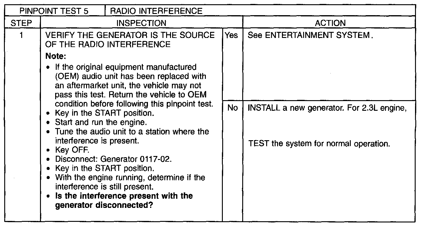 Pinpoint Test 5: Radio InterferenceNormal Operation